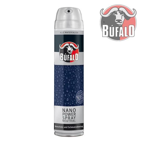 Búfalo Nano Power Spray 是一種高效防水劑,可防潮防塵。其活性成分在織物表面形成納米結構,形成特殊有效的保護膜。 特性: ★奈米薄膜層具有撥水功能並讓汙垢無法吸附,保有透氣性。 ★德國BNS生產世界最高環保安全規格 - 絕無殘留全氟辛酸PFOA、全氟辛烷磺酸PFOS,比一般以氟素為基礎的碳六(C6)防水劑更安全更環保。 ★各式材質皆可使用:真皮(麂皮、牛巴戈皮)、合成皮、混和材料和尼龍等織物材料(GORE-TEX, Sympatex最新科技紡織材料)Read more -